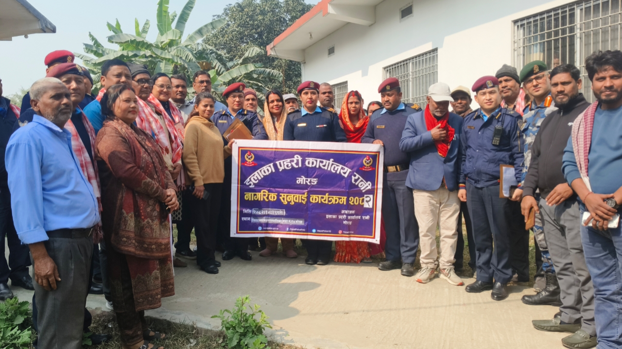 विराटनगर / स्थानीय समस्याको समाधानमा प्रहरी र नागरिक बीच सिधा संवाद स्थापित गर्ने उद्देश्यले आयोजित नागरिक सुनवाई कार्यक्रम २०८२ सफलतापूर्वक सम्पन्न भएको छ। इलाका प्रहरी कार्यालय रानी, विराटनगरद्वारा विराटनगर महानगरपालिका वडा नं. १४ को सभाहलमा आयोजित कार्यक्रममा जनप्रतिनिधि, आम..