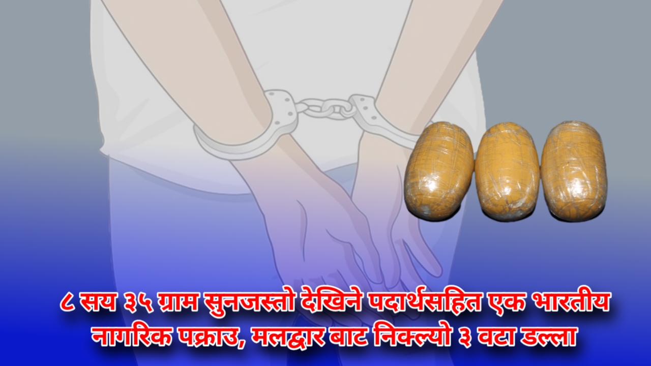 काठमाडौं / त्रिभुवन अन्तर्राष्ट्रिय विमानस्थलको आगमन भन्सार क्षेत्रबाट करिब ८३५ ग्राम सुनजस्तो देखिने पदार्थसहित एक भारतीय नागरिक पक्राउ परेका छन्।