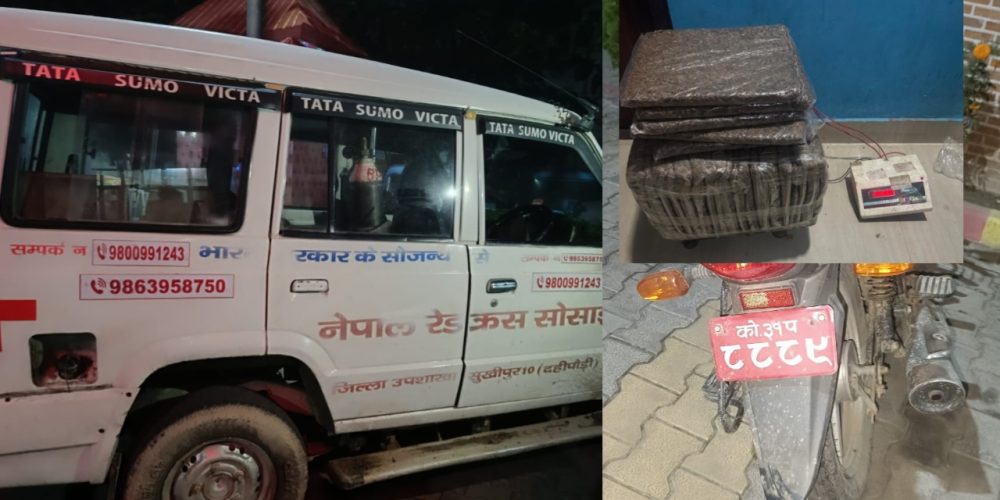 रेडक्रसको एम्बुलेन्समा लुकाएर लैजाँदै गरेको ३३ किलो गाँजासहित दुई जना पक्राउ